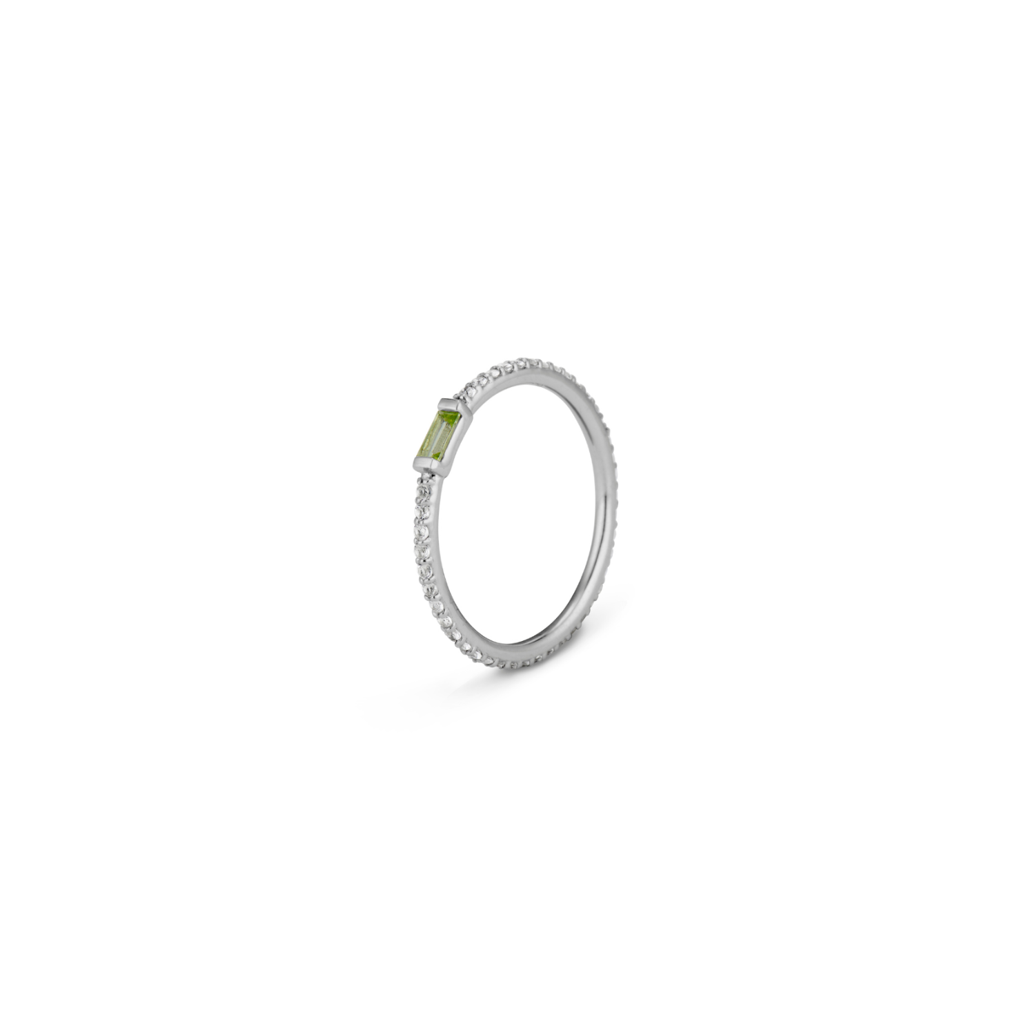 From birthdates to anniversary months, customize this fine jewelry stack for the finest of life's moments. Stack your story with our Birthstone Rings! This single band is adorned with white topaz and a custom-cut colored baguette to represent the most special month and color in your life. Please note your gemstone color in the field at checkout.