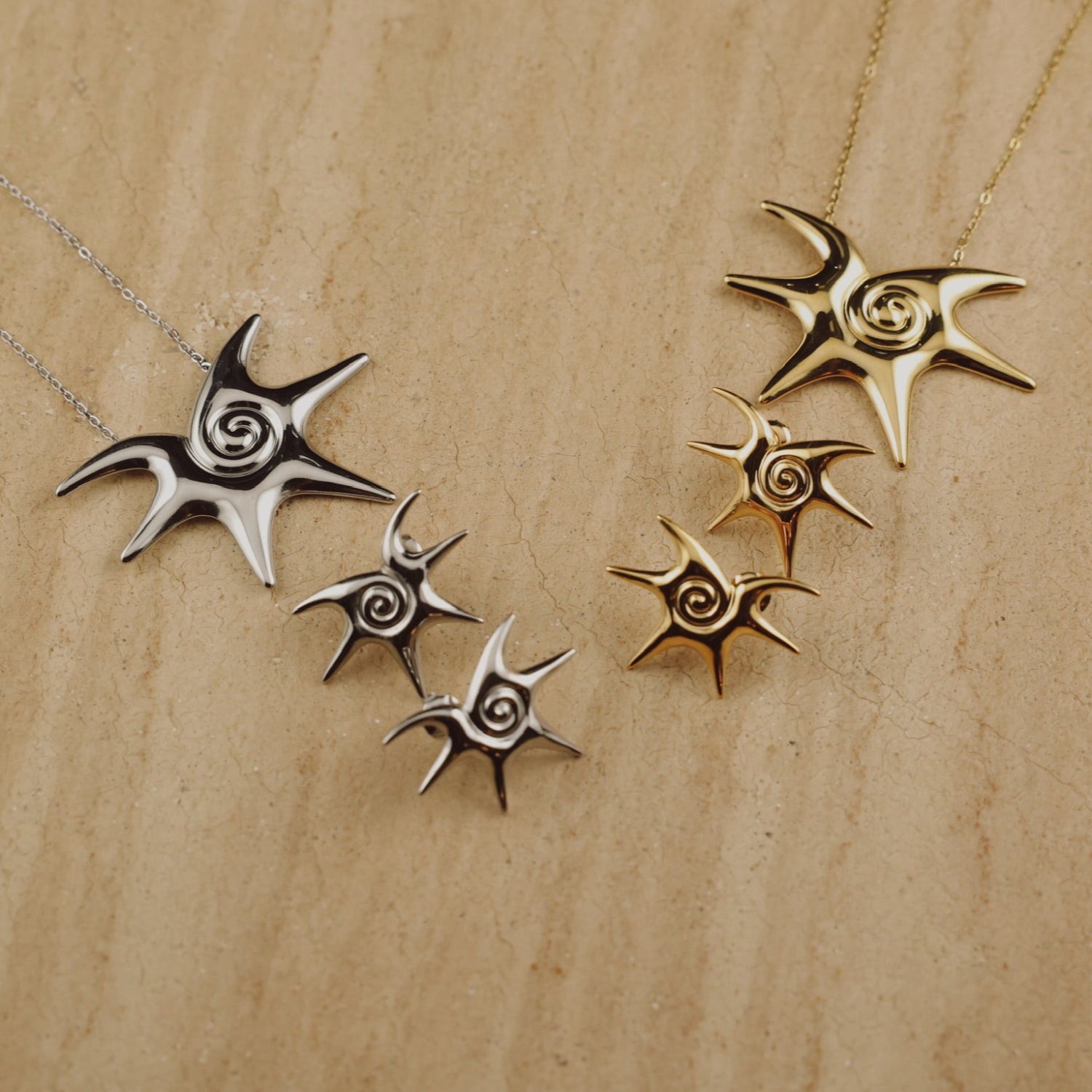 Embrace the heat with our Isla earrings! Let the sun burst swirl design add a touch of adventure to your summer look.